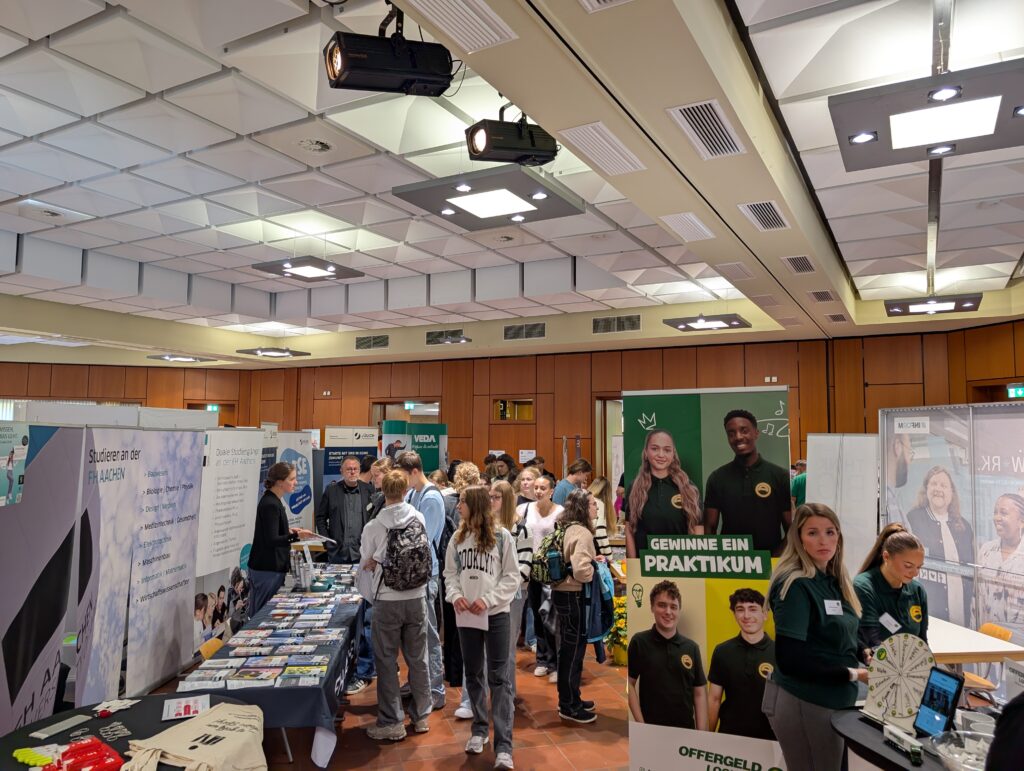 Die Messe bot den Schüler:innen verschiedener Schulen erneut ein breit gefächertes Programm. Neben zahlreichen Ständen konnten sie an Workshops und Vorträgen teilnehmen, die insgesamt rund 70 verschiedene Angebote umfassten. Vorgestellt wurden Ausbildungsberufe ebenso wie Studienmöglichkeiten an den Aachener Hochschulen, außerdem Chancen im Freiwilligendienst sowie berufliche Wege bei Bundeswehr und Polizei. Individuelle Beratungsgespräche durch die Agentur für Arbeit ergänzten das Angebot. Dieses erstreckte sich hierbei nicht nur auf die Städteregion Aachen. Sowohl ausstellende Unternehmen aus den Niederlanden, als auch Studierende des Berufscollege Holz (Kerkrade) waren dieses Jahr auf der StuBOB vertreten. Besonders erfreulich: Nahezu alle teilnehmenden Unternehmen, Institutionen und Einrichtungen betonten, dass sie Schülerpraktika und Ausbildungsplätze anbieten und sich auf Bewerbungen unserer Schüler:innen freuen.