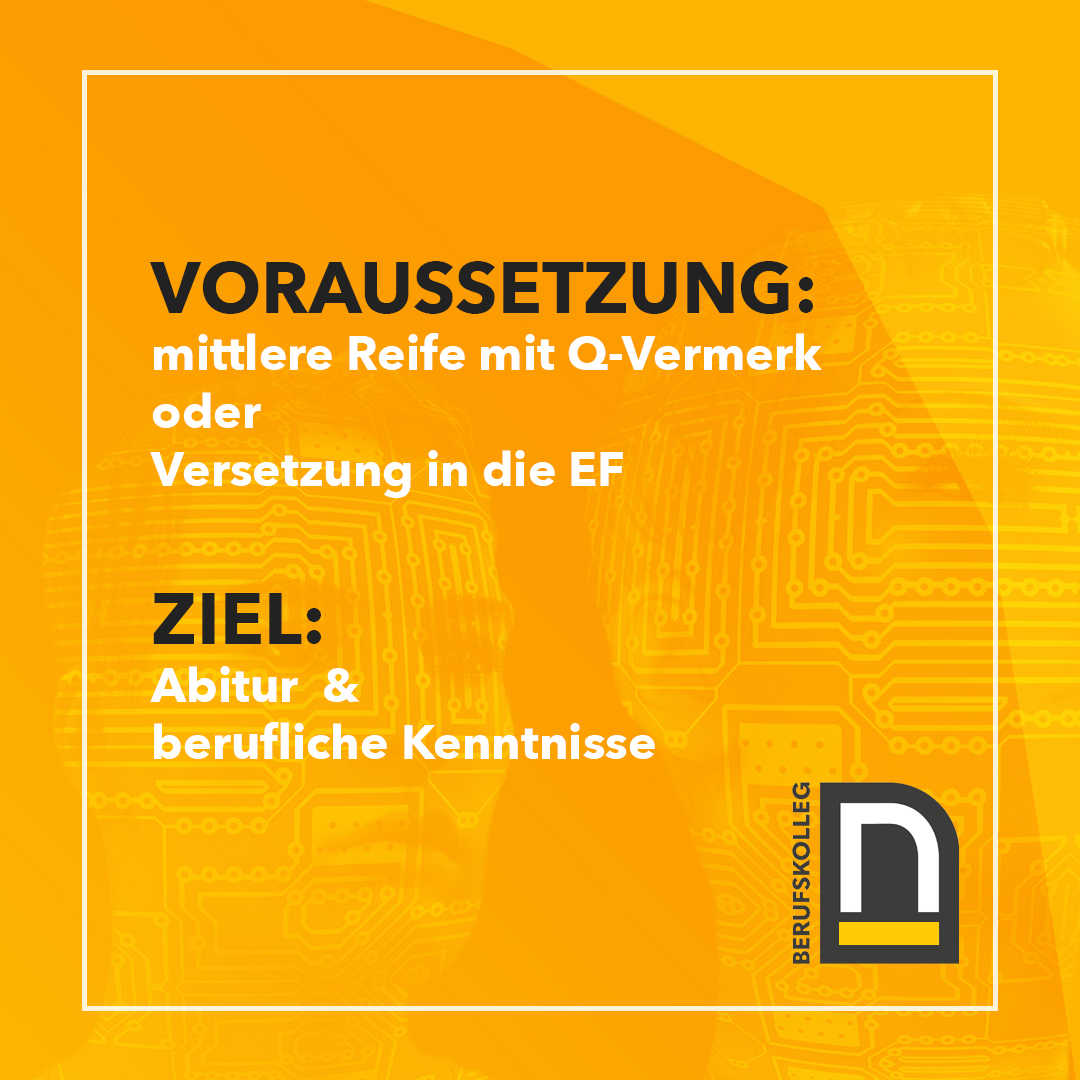 - das Berufliche Gymnasium Informatik, das zur Allgemeinen Hochschulreife (Abitur) führt,