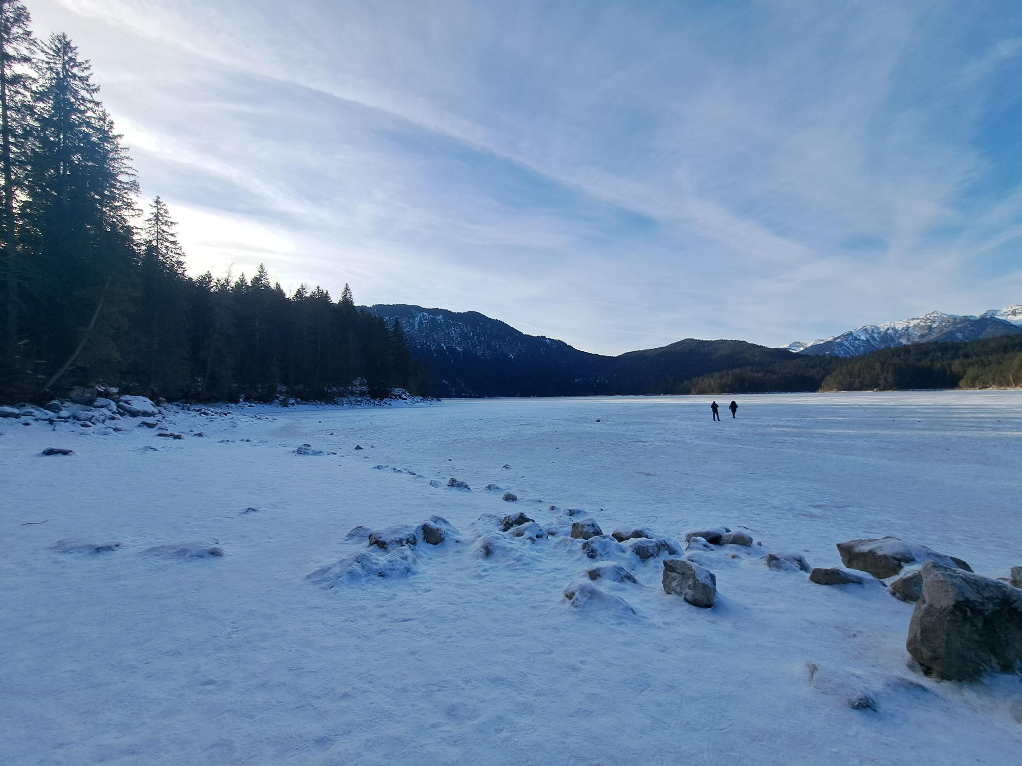 Ein weiteres Highlight war die Fahrt mit der Zugspitzbahn nach Garmisch-Partenkirchen. Bei bestem Wetter bestaunten wir die atemberaubende Aussicht auf die Alpen vom Gipfel der Zugspitze. Trotz der Herausforderungen der Höhe war die Aussicht unvergesslich! Auf dem Rückweg hielten wir am zugefrorenen Eibsee.